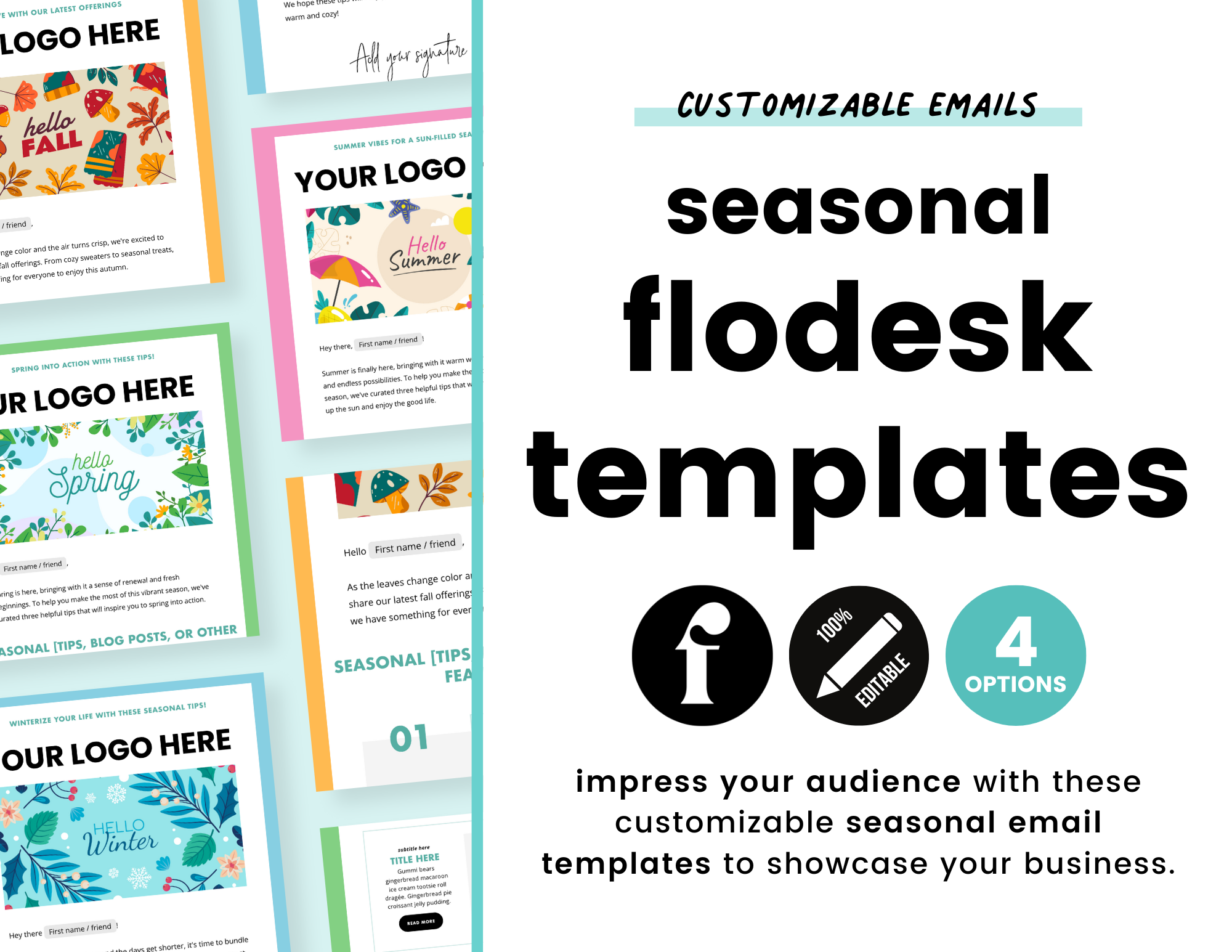 Transform your seasonal email marketing strategy with the Seasonal Pack Flodesk Newsletter Templates. Start making an impact today!